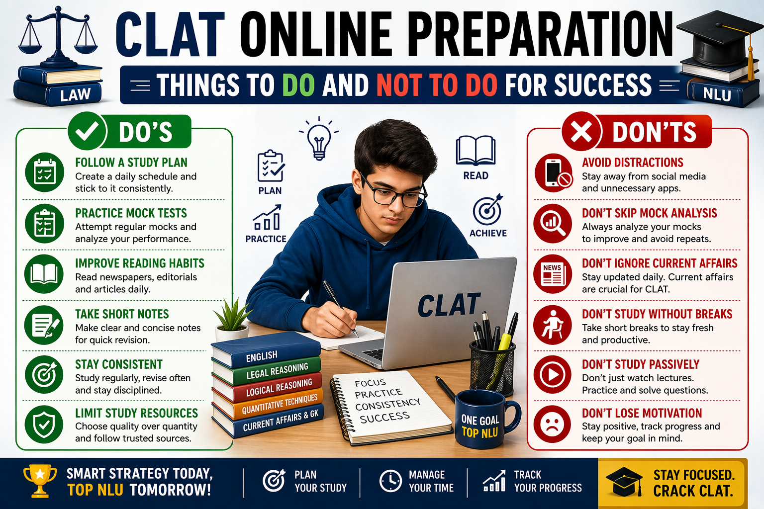 Remember, success in CLAT is not about studying the most, but studying smartly and consistently.